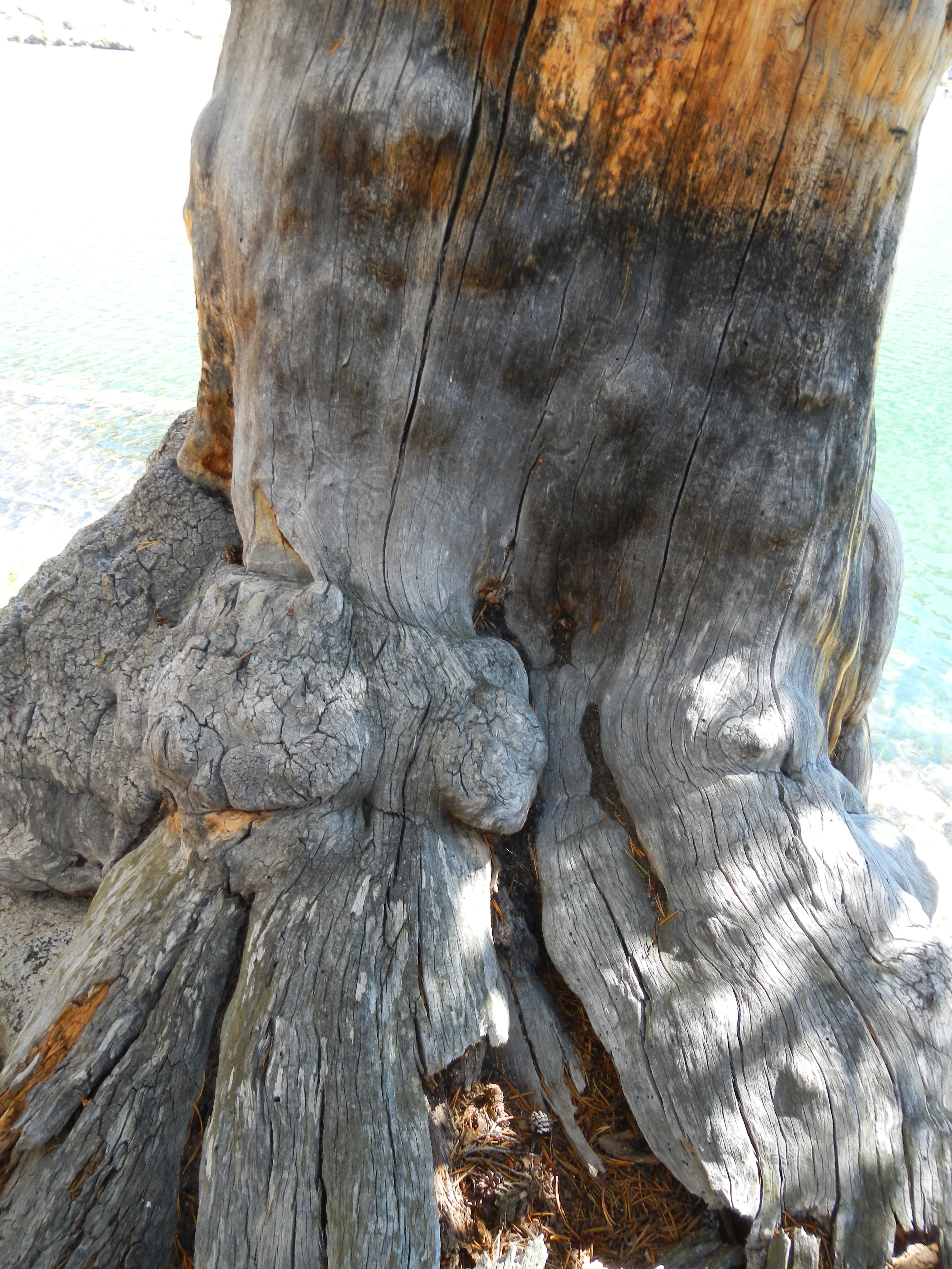 Close-up of the gnarly tree trunk.