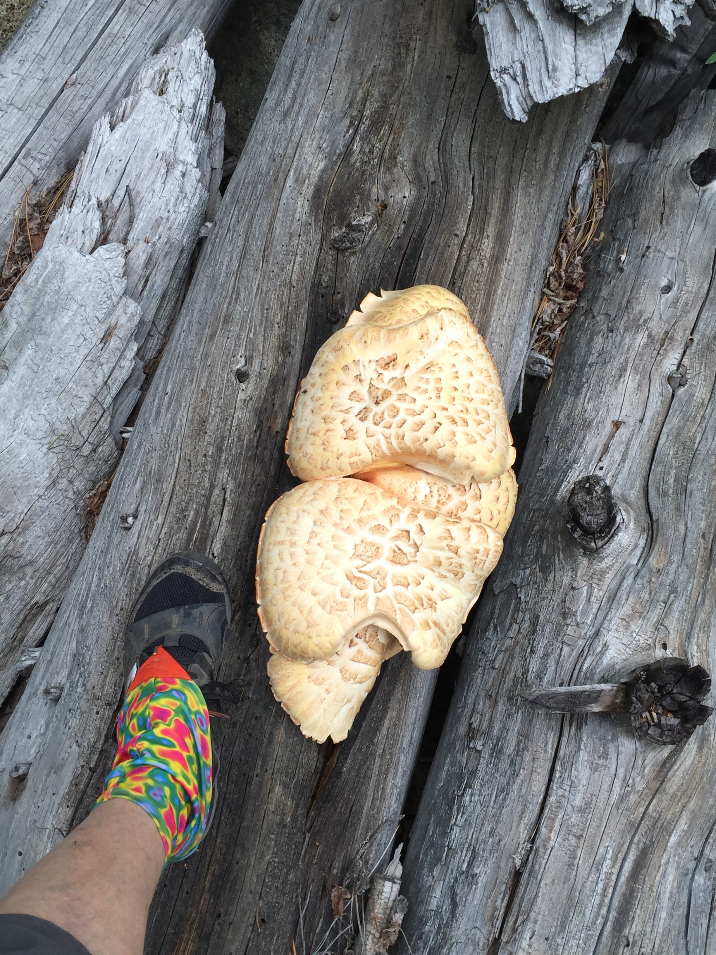 A large fungus. So puffy and light-looking that I just had to climb up on the fallen logs to get a photo.