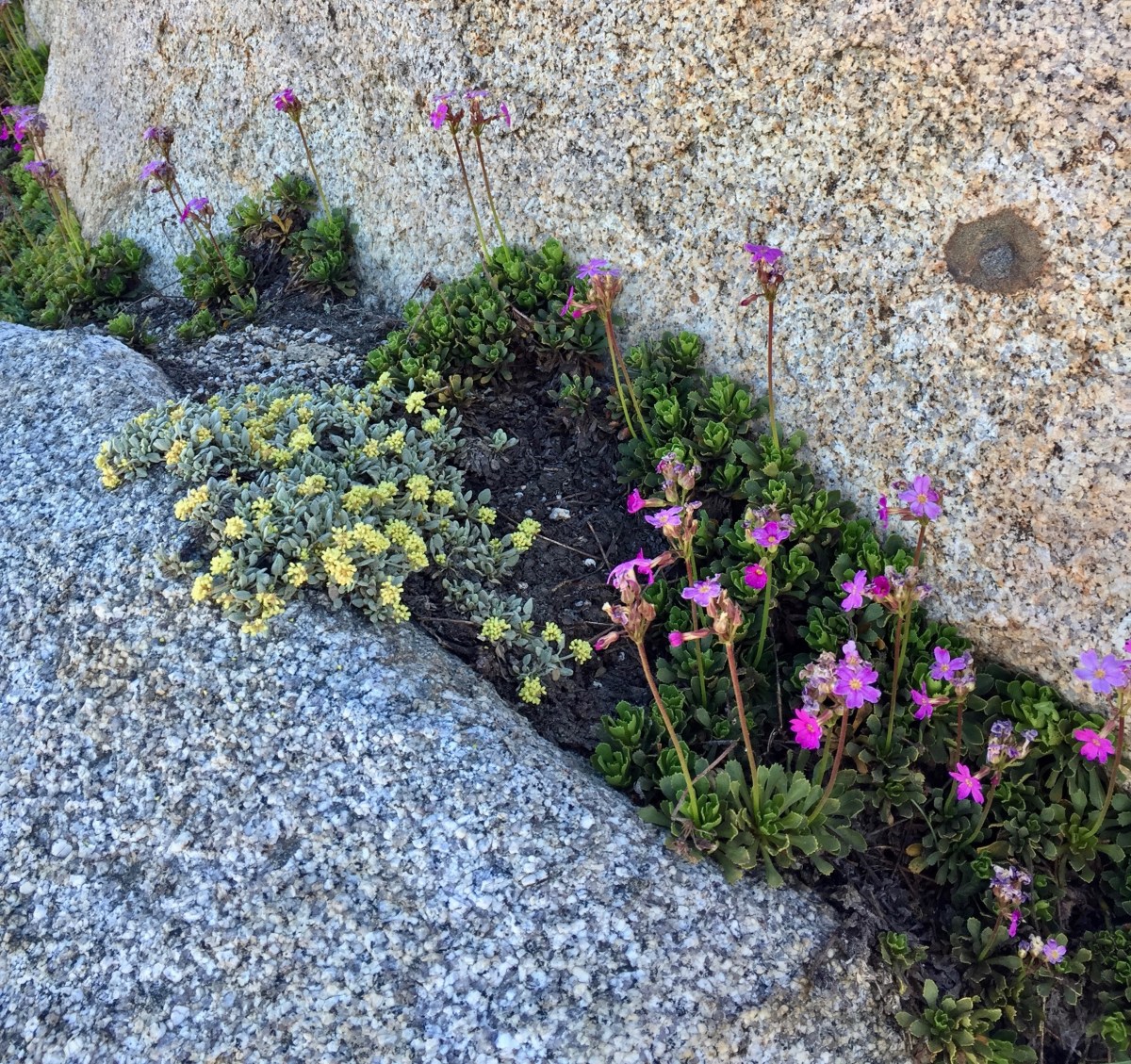 Sierra Primroses (pink) Published July 31, 2020 at 2448 × 2305 in Day 2, Sawtooth Pass and Lost Canyon ← Previous Next → Sierra Primroses and I don’t know what succulent.