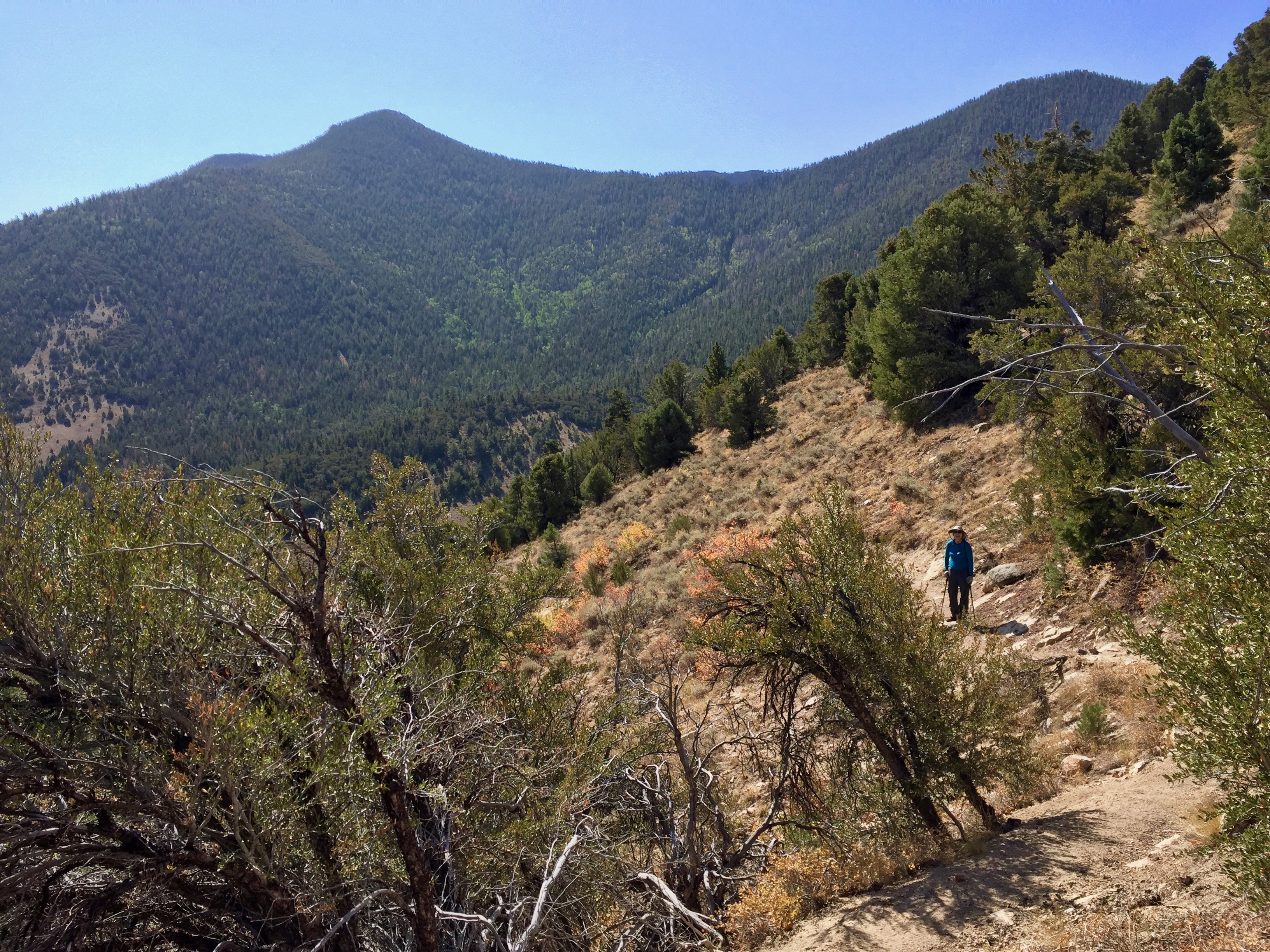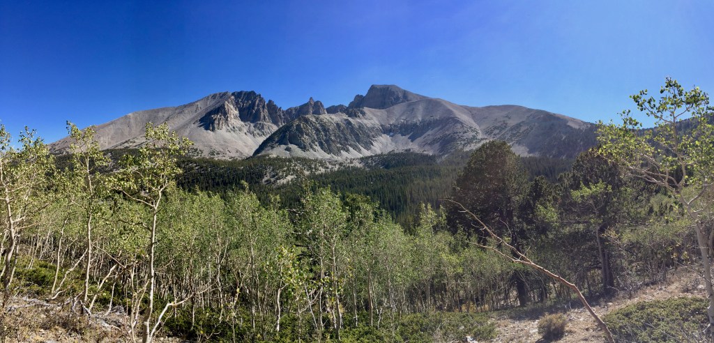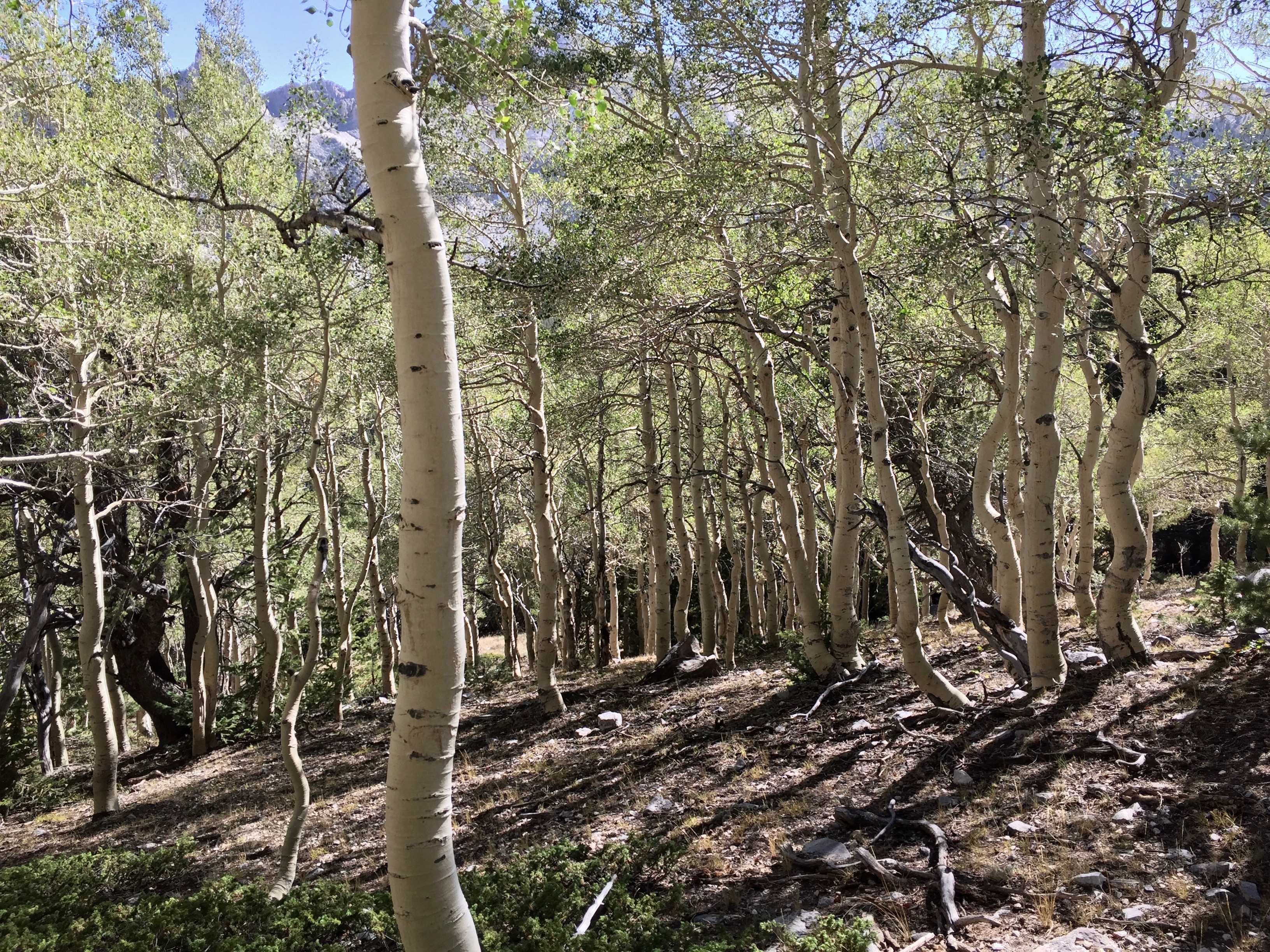 Through a break in the aspens, we caught views of Wheeler Peak. We had intended to take a day to hike up to the summit, but my knee changed our plans.