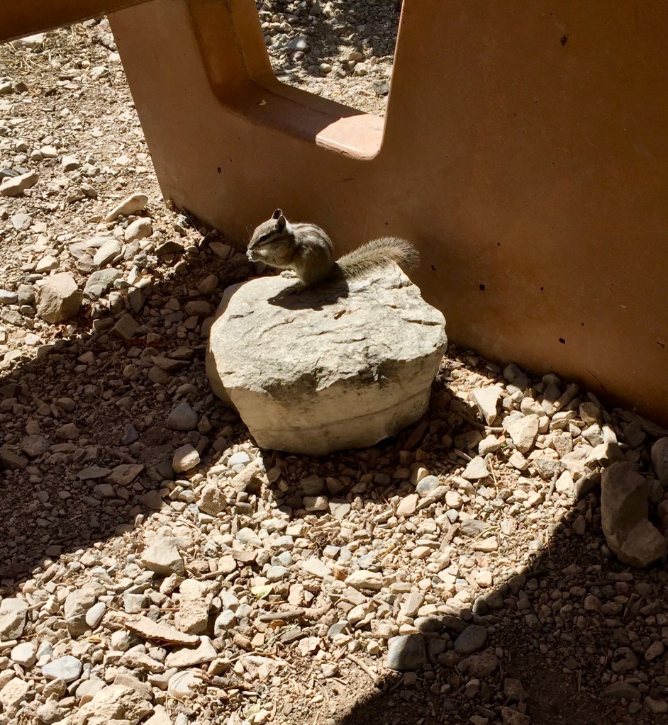 A chipmunk joined us for lunch at our campground. We didn’t feed it (not intentionally, anyway)
