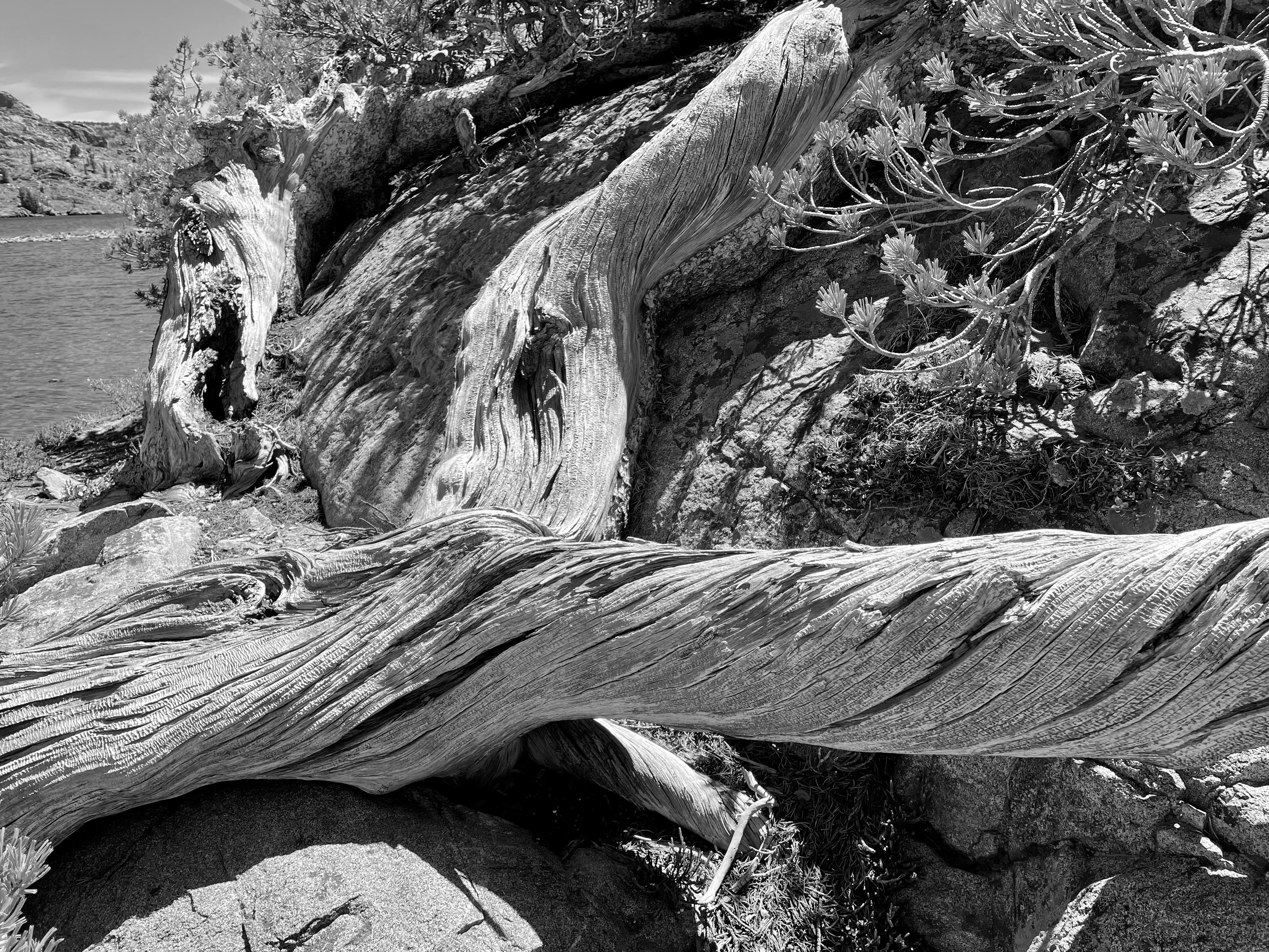In which I try for an Ansel Adams feel. Sometimes, black and white is the way to go, especially in these mountain realms where much of the palette is already more than halfway there.